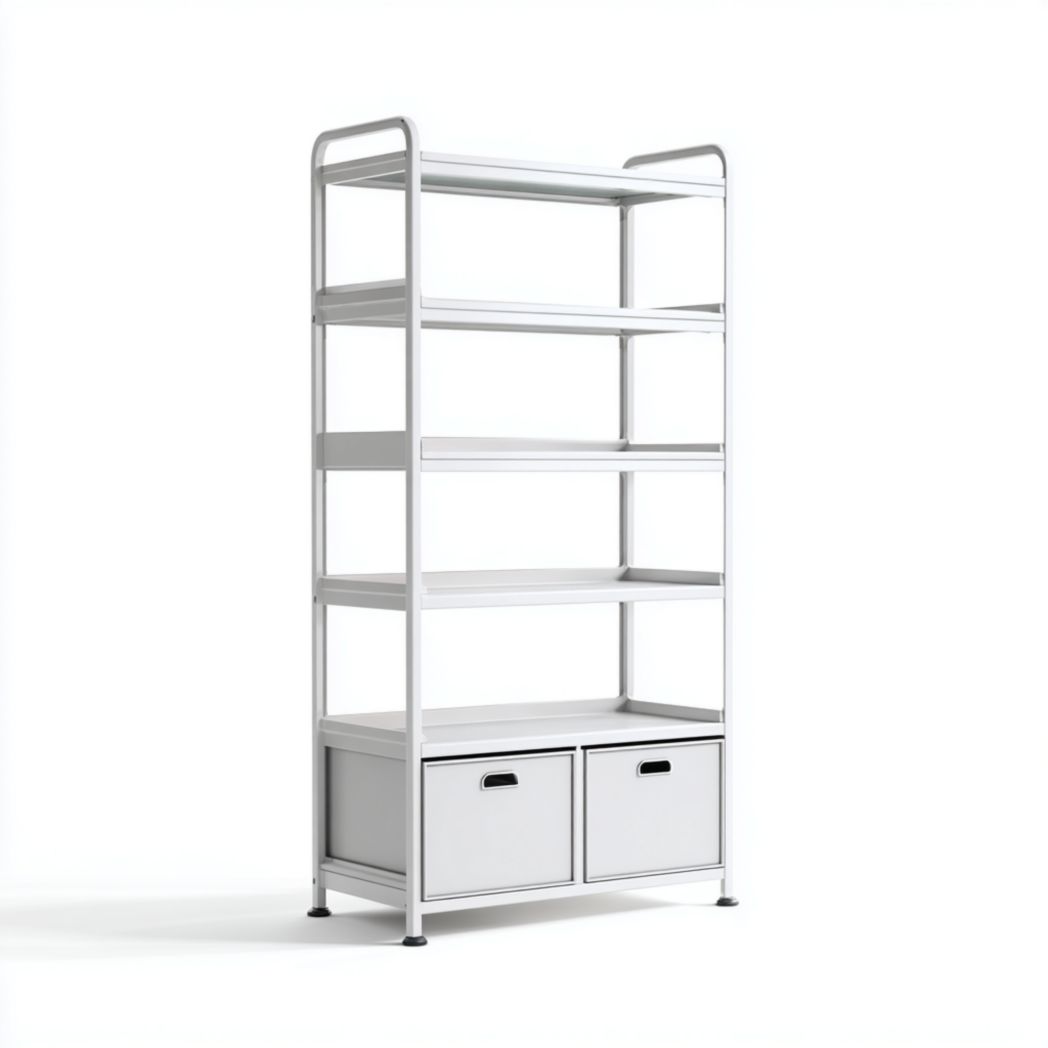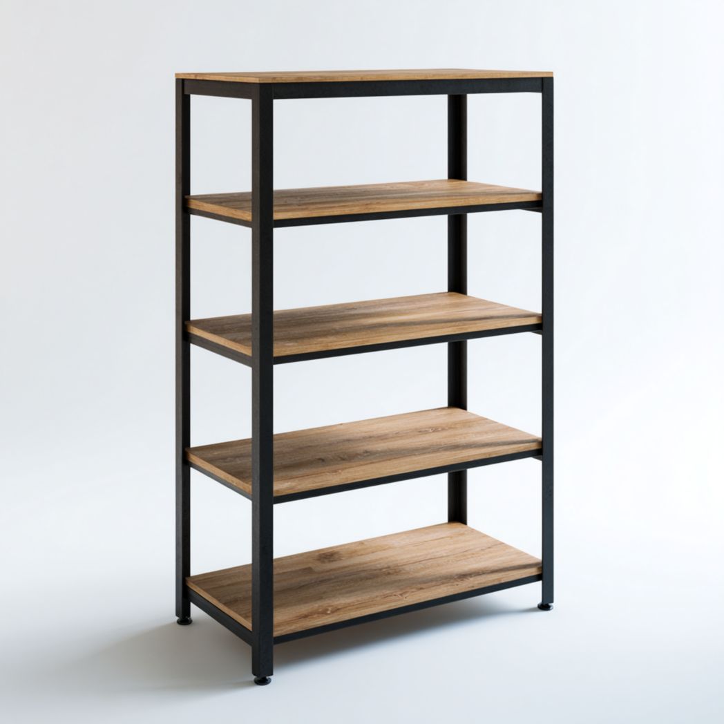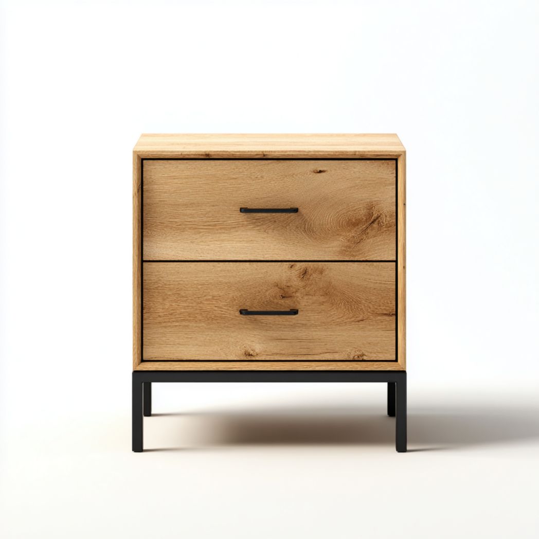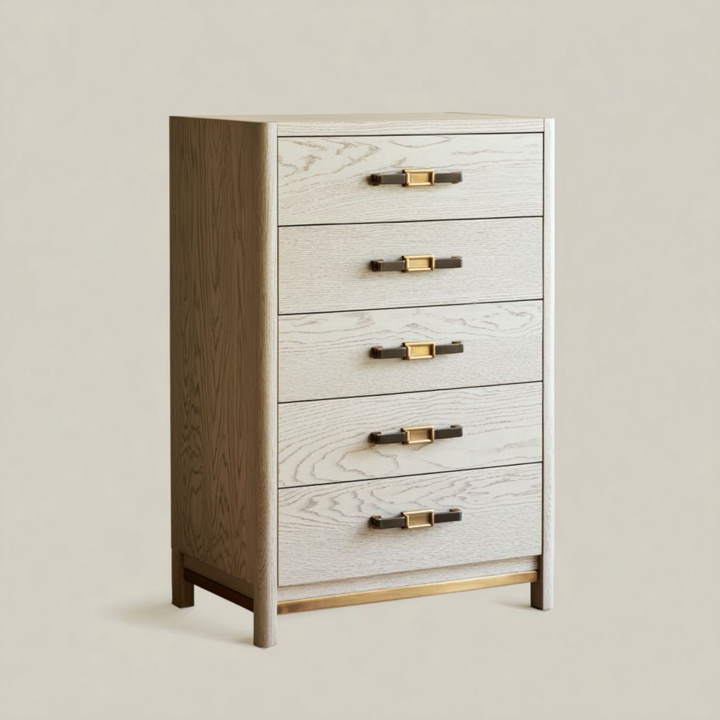 Commode haute 5 tiroirs en bois clair avec poignées métalliques